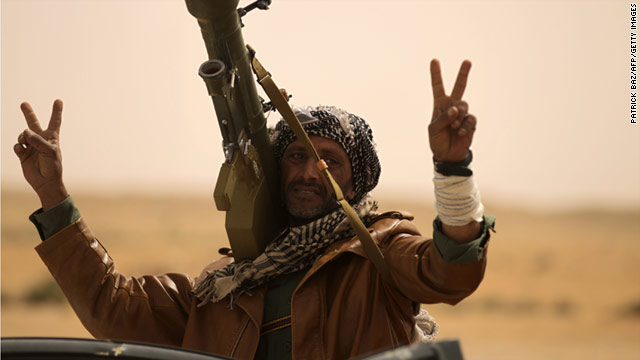 Separately on Tuesday, at least two airstrikes were reported targeting the eastern city of Ajdabiya by pro-Gadhafi military jets, eyewitnesses told CNN. Ajdabiya is one of the cities between pro-government forces and the opposition stronghold in Benghazi. If Ajdabiya is retaken by government forces, it would give pro-Gadhafi forces access to roads leading to the heart of the opposition's base.